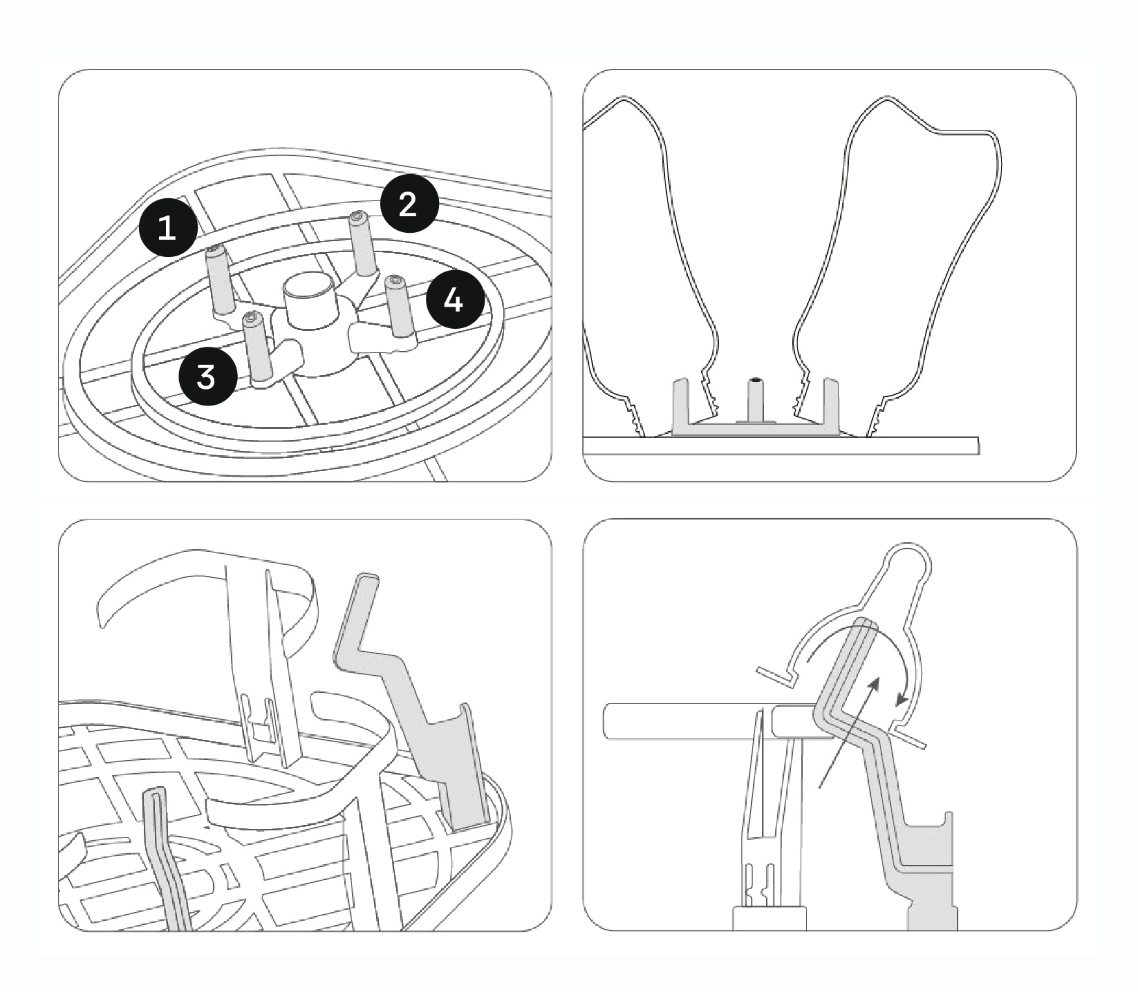 For the best cleaning and drying results, place your bottles directly over the jets – this helps improve airflow and ensures a more thorough wash. We also recommend separating the teats from the screw-rings and hanging them on the corner posts. These small steps makes a big difference in hygiene and drying efficiency.